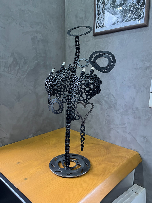 Buste réalisé à partir de pièces de moto