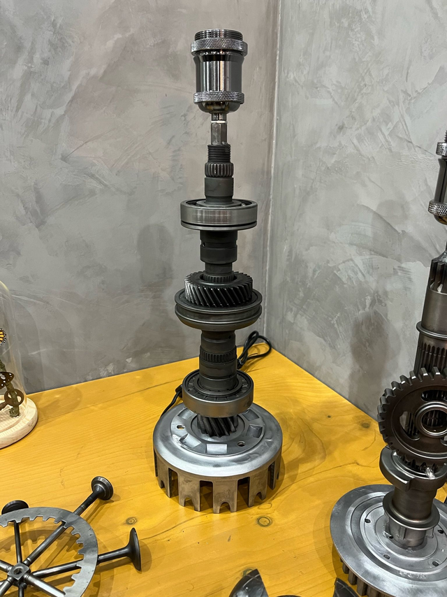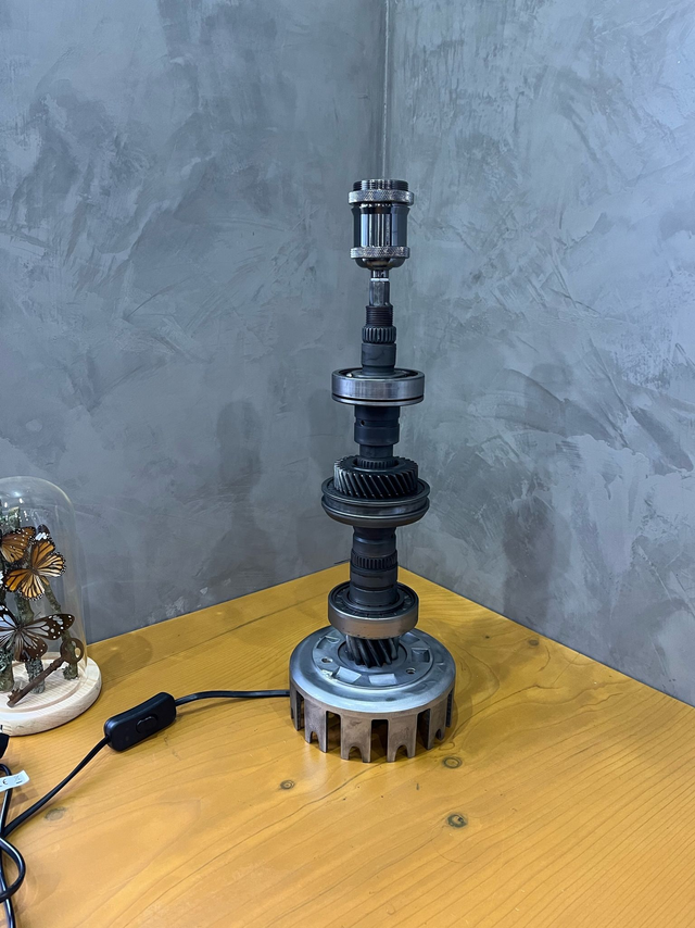 base d'un arbre secondaire de boîte de vitesse et une cloche d'embrayage de moto, avec roulements et pignons soudés.