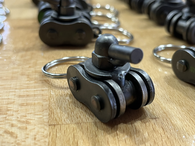 Porte clé réalisé à la main à partir de maillons de chaînes de moto recyclés.